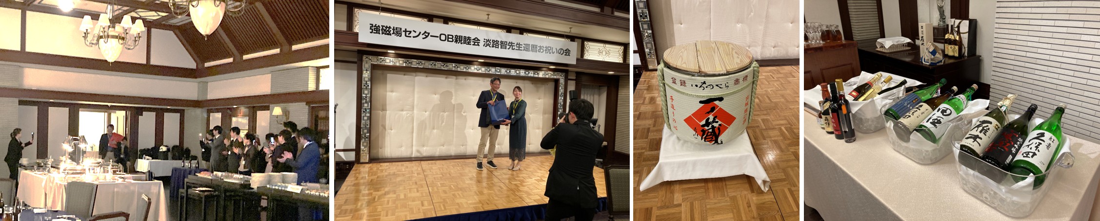 今年で還暦を迎えられた強磁場センター淡路先生の還暦祝いが同センターOB会を兼ねて開催されました。何故が入場がアントニオ猪木の入場テーマINOKI BOM-BA-YEなのが笑えます(お決まりの「1,2,3,ダー」で開幕)。強磁場センターらしく大量の日本酒が届けられましたが、2次会までにほとんど消費したのがすごかった・・・。全国から懐かしい顔ぶれがあつまり(当時は低温センターにもよく実験に来ていたし、研究室旅行も低温・強磁場グループでやっていました)、楽しいひと時を過ごしました。