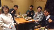 今年度で退職される技術補佐員の嶋村さんを囲んで記念撮影&送別昼食会を取り行いました。ヘリウムの配達、金研の液体窒素のお世話、研究室の共同利用機器のヘリウムトランスファーとマルチに頑張っていただきました。2年間ご苦労様でした。その後、昭和のおじさん達は、夜の街に繰り出したのでした(二日酔いが・・・)。